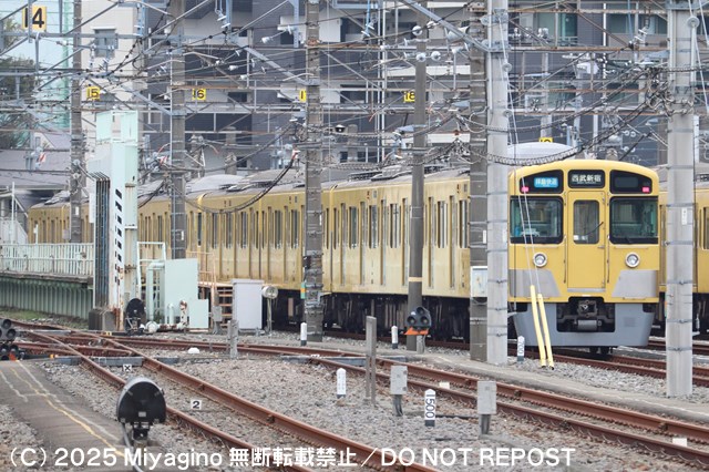 15番線には2523F+2545Fが留置中。懐かしの拝島快速西武新宿表示で留置されていた。